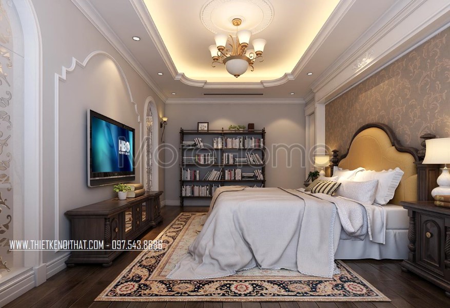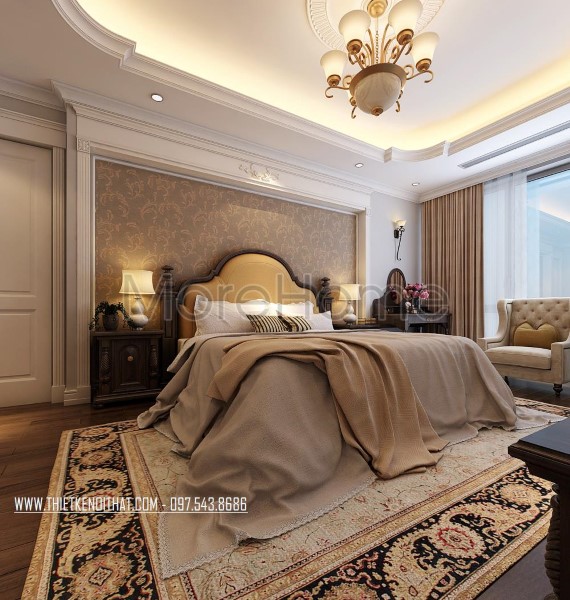 Thiết kế nội thất phòng ngủ khách sạn tân cổ điển