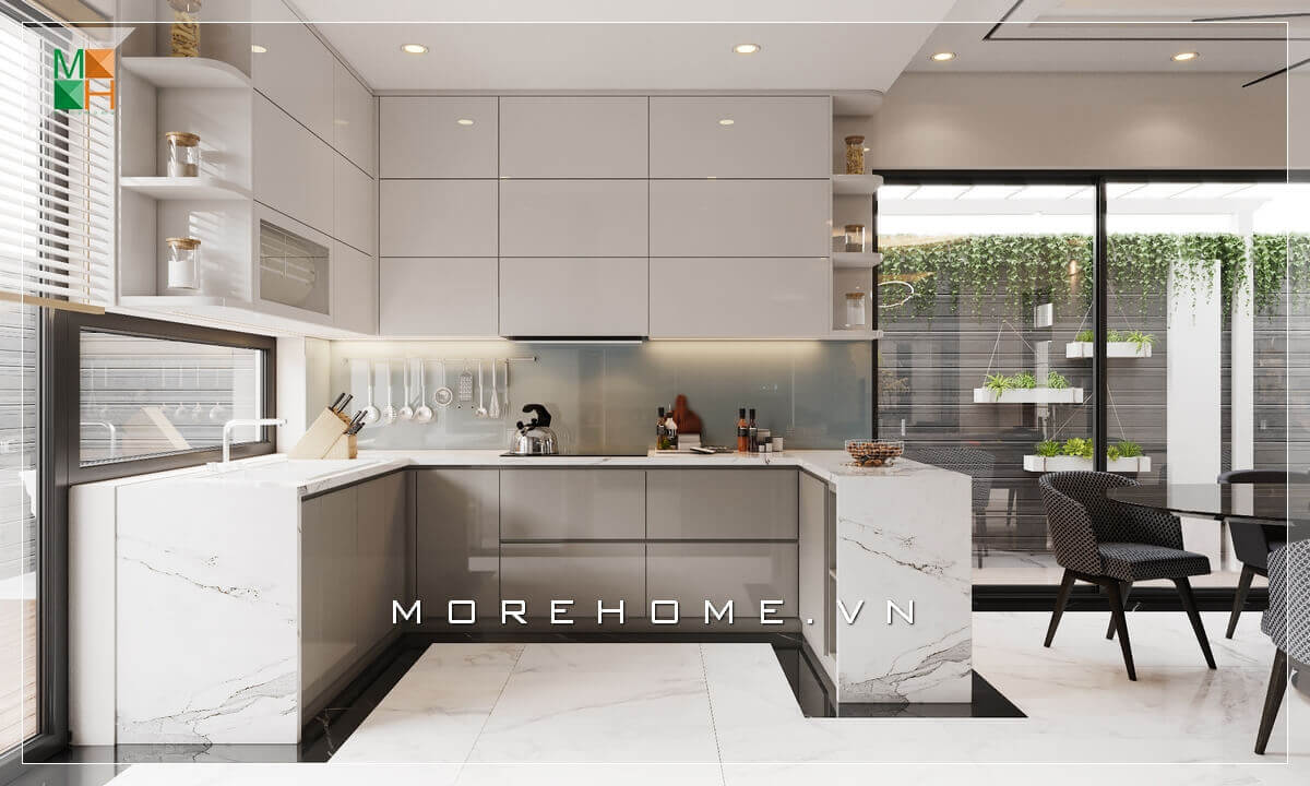 Thiết kế nội thất bếp hiện đại, bếp chữ u rất hiện đại và đẹp dành cho biệt thự, nhà phố.